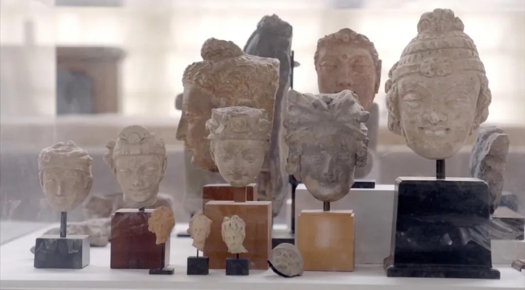 一个木制玻璃柜中,是公元三世纪左右的犍陀罗。“我的收藏因为被我的口袋所限制,要靠眼睛去弥补口袋的不足。”他说着,走到另一排长方形展柜中,整齐排列着一片15-19世纪的亚洲地区的古董木雕残件,很多是佛手。