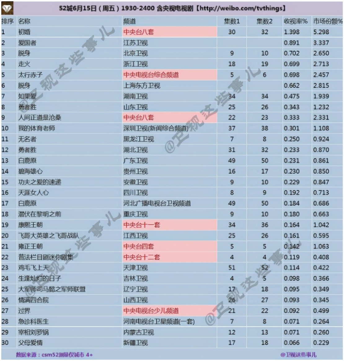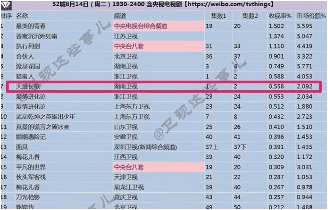 首播即最高播放量,之后持续走低,跌破了东方卫视的最低线。