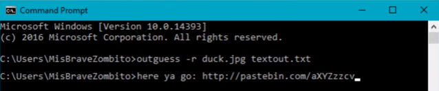 然而还是有聪明人猜到,可能需要用一个叫outguess的软件对图片进行破译,因为文字中出现了out 和guess两个词。