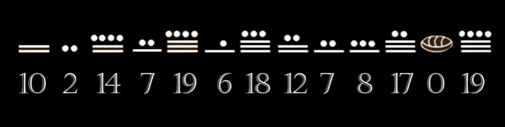 左上角的玛雅数字倒是很好解释,对应的数字翻译如下: