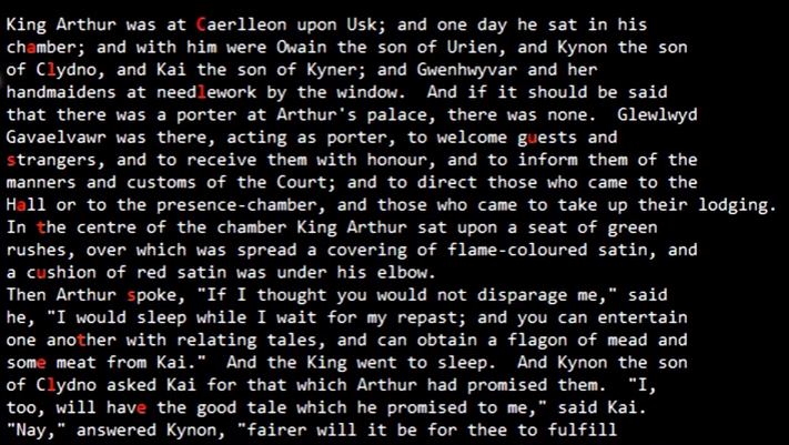 这段字符,竟然是《亚瑟王》每句话的开头字母!说明这就是坐标定位的原文。