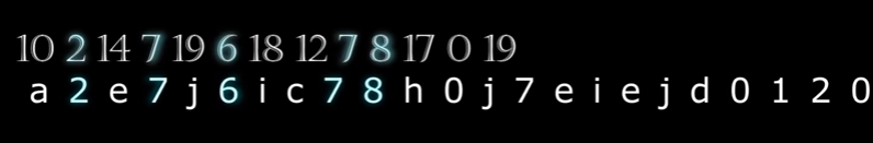 如果让a=0,那么由玛雅数字得到的密钥1翻译成字母,就得到了密钥2: