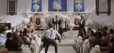 还因为发生车祸摔成脑震荡,被救护车拉走。恰巧去医院的路上刚好路过教堂,只能跳车。甚至光着屁股混入马拉松比赛,被当成变态关进了监狱。总之,他的结婚之路都快赶上西天取经了。