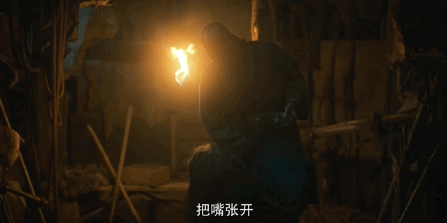 士兵拿起猪食,像对待牲畜一般,塞向这坨“肉球”。