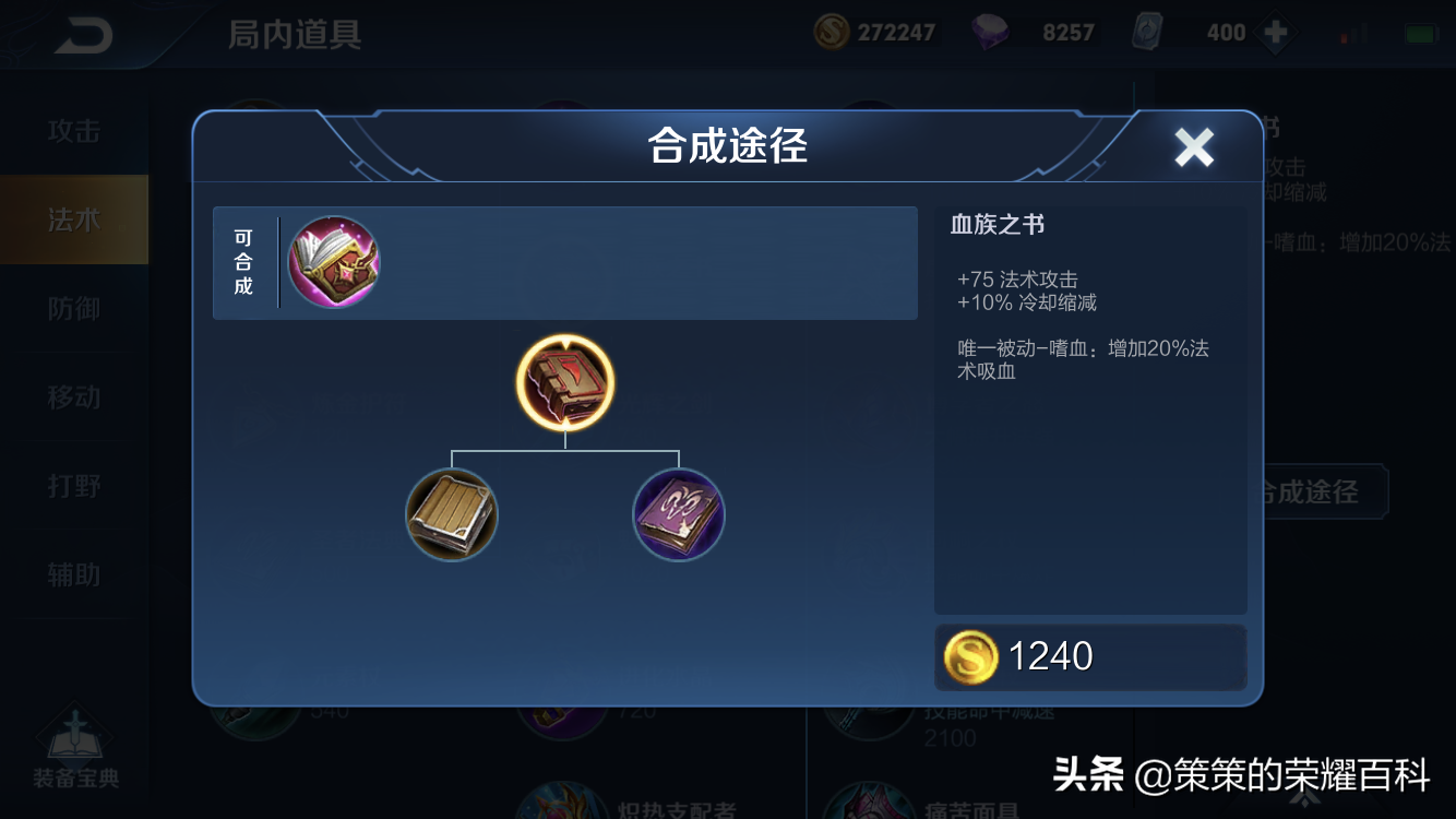 噬神之书,提供180法攻,10%冷却与800最大生命,被动嗜血可增加露娜25%法术吸血,这也是露娜在月下无限连时,具备一定坦度的原因之一。