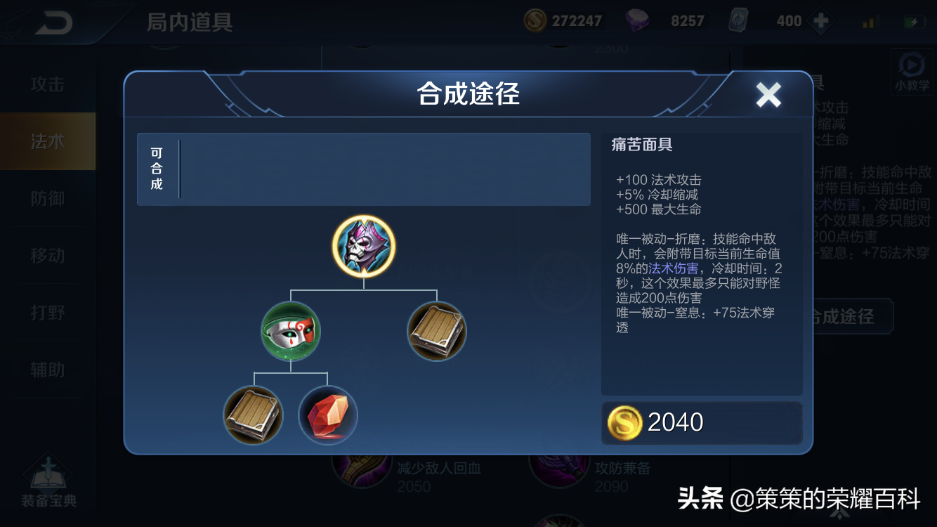 倘若敌方阵容魔抗装较少,北慕则会先选择金身或极寒,最后再合成痛苦面具。