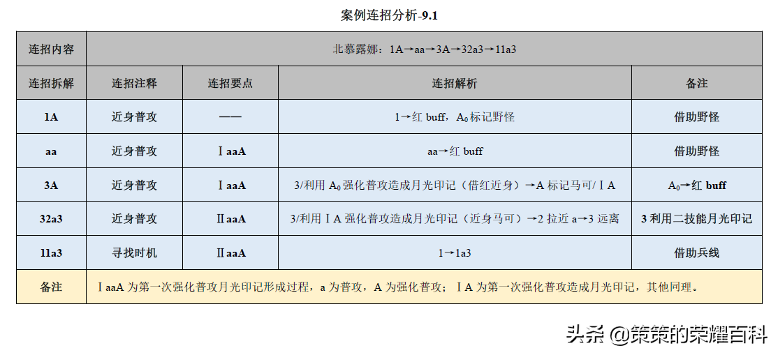 露娜基本连招并不复杂,关键在于技能与普攻合理衔接并将月光印记最优化处理,策策主要从后摇问题、提前普攻与起始结束进行分析,具体如下: