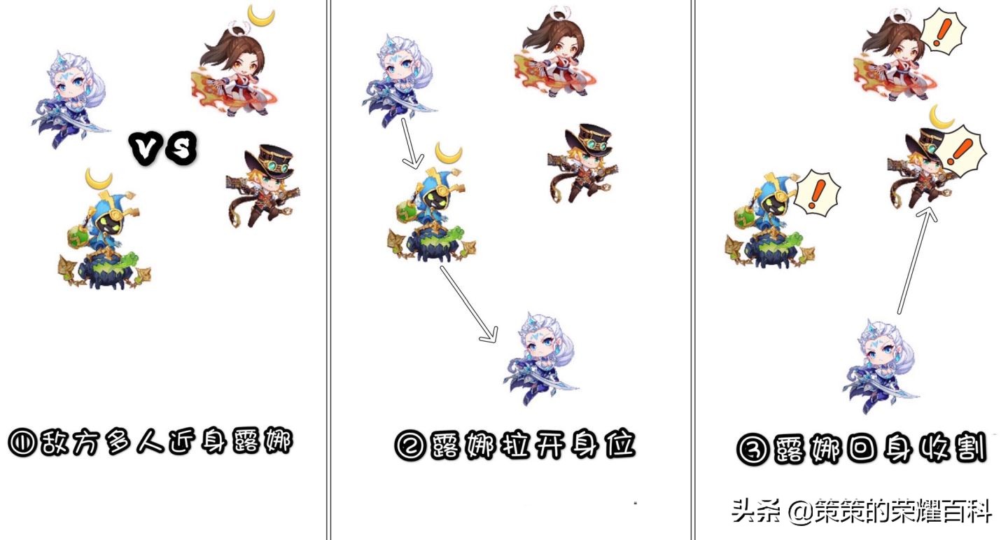 也就是说,露娜可以利用自身的灵活性,打完相应的伤害诱骗敌方技能之后先规避伤害,再看准时机回身输出。