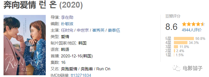 《奔向爱情》开播后,虽然在国内没有激起很大的水花,但豆瓣评分还是慢慢爬到了8.6。