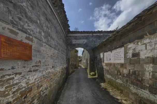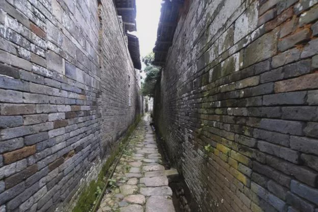 离开文昌宫,沿路就进入了金坑古巷,金坑上下坊古巷内尚有100多栋古民居建筑群。街巷四通八达,纵横交错,蜿蜒曲折,一根根,一道道,像人的血脉,青筋暴露,不长却有形;青石板齐整光洁,像打上了历史的油印,又像涂抹了村姑的脂粉,一块块,一堆堆,扎实厚重,像串串脚印无规则地伸向远方,短促却有力。这里到处是高墙林立,到处是壁立千仞,到处是曲径通幽。