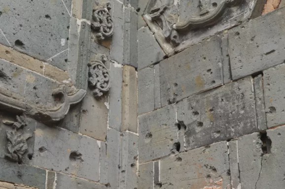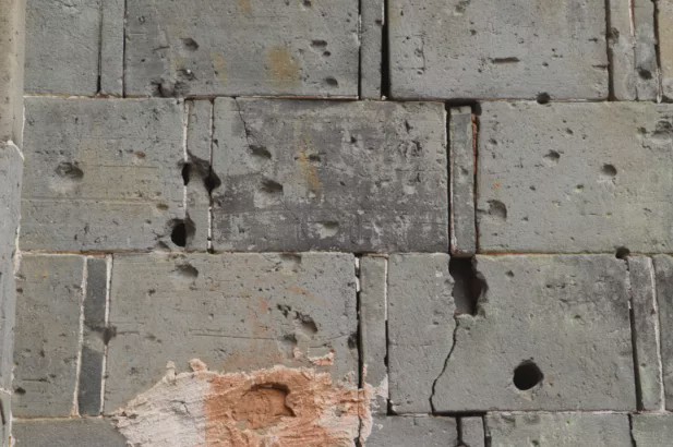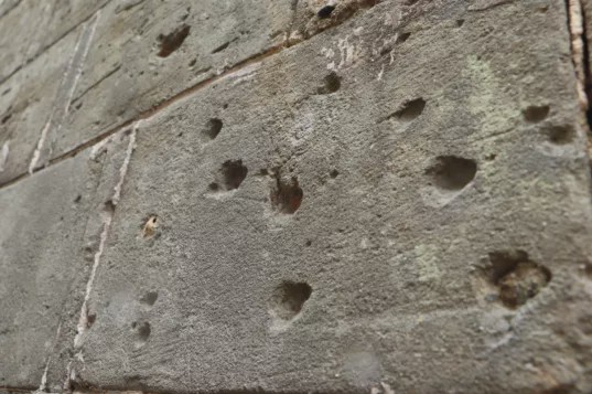 12月20日,国民党第14师从黎川进攻金坑,国民党持续一个星期出动数十架次飞机,投弹60余枚,炸死4人,伤5人,炸毁民房数百间,整个金坑笼罩在浓烟烈火之中,到处残垣断壁。而这座弹孔墙屋只是当年被国民党飞机轰炸的残墙之一。
