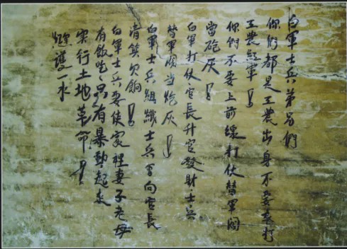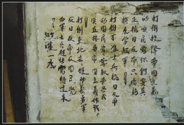 蒋(光鼐)、蔡(廷楷)是屠杀抗日士兵的国民党军阀!反抗蒋蔡刽子手活埋抗日义勇军!反抗蒋蔡刽子手屠杀抗日士兵!(红军护一水) 硝烟已逝英魂在,红色精神永相传。这些红军标语,作为金坑革命时期的重要历史见证,作为红军留下的宝贵精神财富,深深扎根老区,成为世代相传、教育后人的民族精神财富。