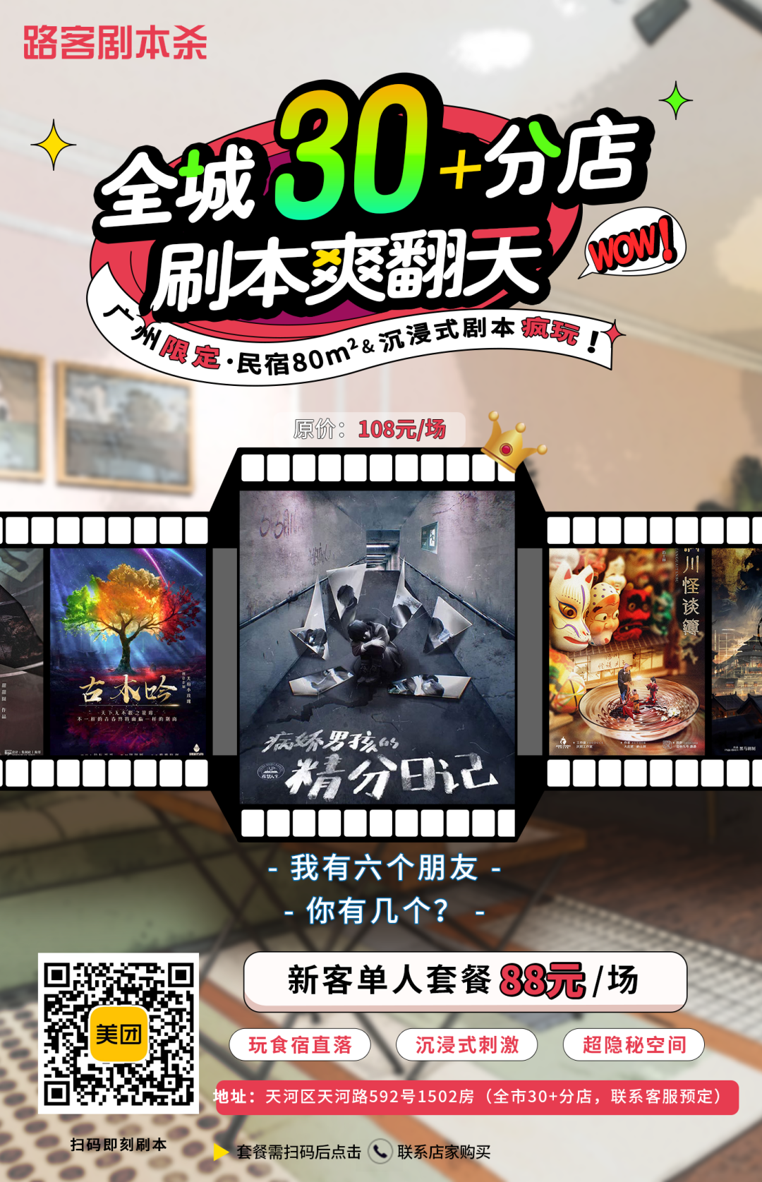 周末约上好友,来一场酣畅淋漓的剧本杀,放松又有趣!套餐抢购价仅需528元!广佛30+场地任选,20+剧本任选!最多可以8人参与,简直不要太划算~