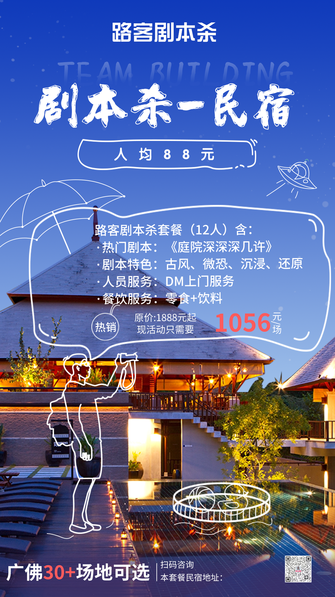 只玩剧本杀不过瘾?999元即可抢购剧本杀体验+民宿套餐!每人仅需125元,就能拥有剧本杀+特色民宿双重体验,超值活动千万别错过!