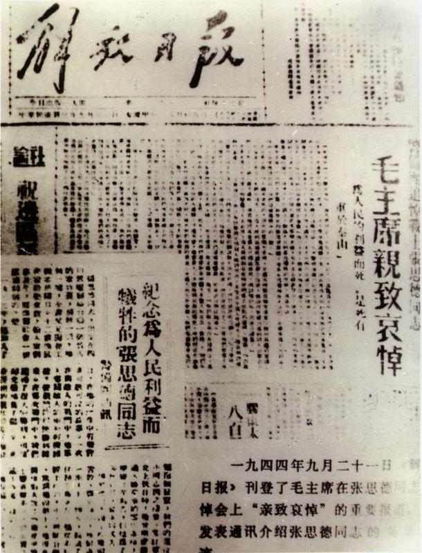 上午,毛主席为张思德追悼会题写了“向为人民利益而牺牲的张思德同志致敬。”