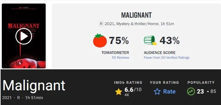烂番茄网站上本片的新鲜度是75%,爆米花指数只有43%;imdb上的评分则是6.6分。虽然这个分数在恐怖片中也不算低,放在温子仁这样的大师身上就有失水准了,显然温子仁的这次改变风格的尝试并不算成功。