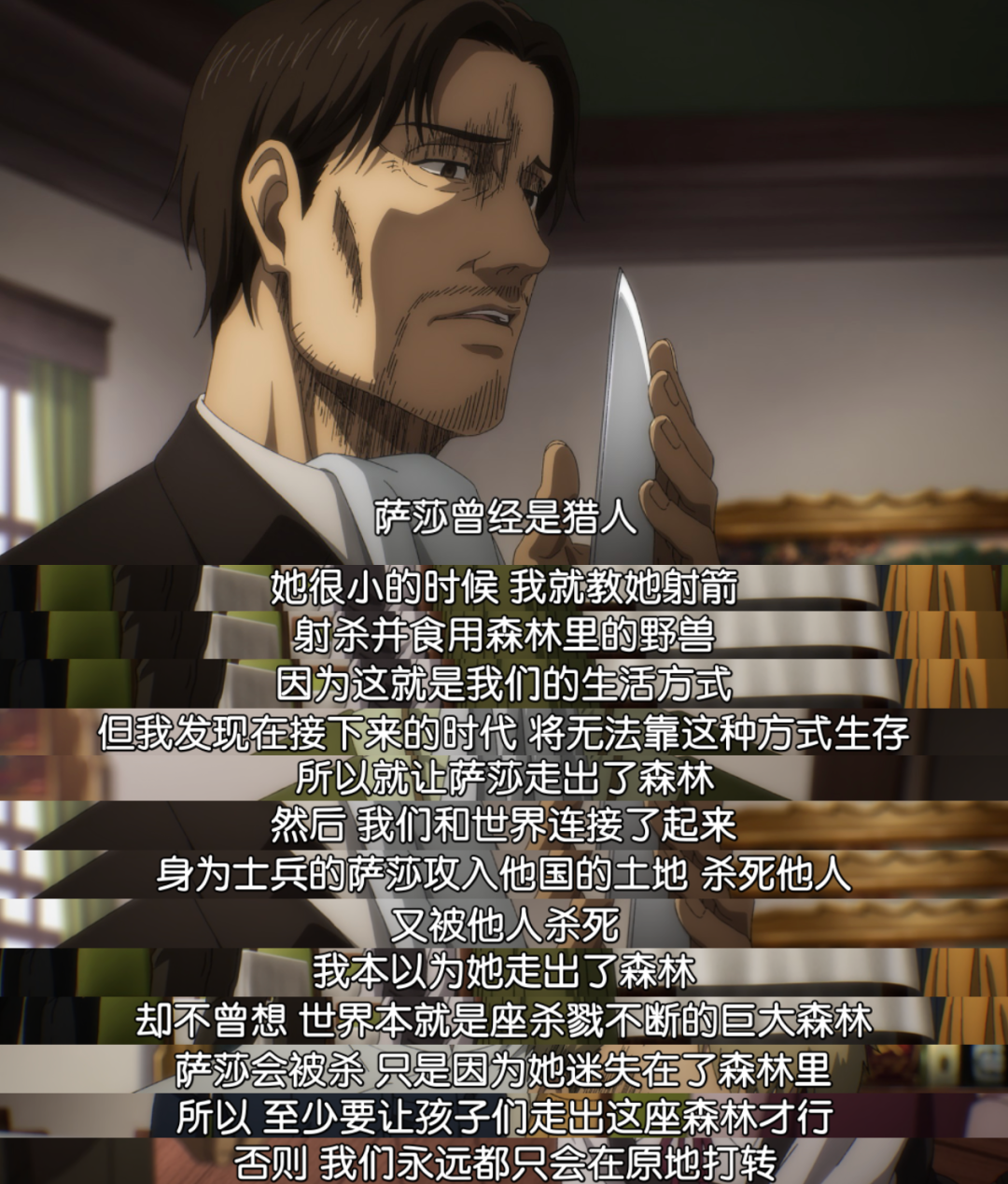 包括他的两个儿子吉克、艾伦在内,剧中太多人都自认为正确,因此恨着抽象的人,为着抽象的目标。