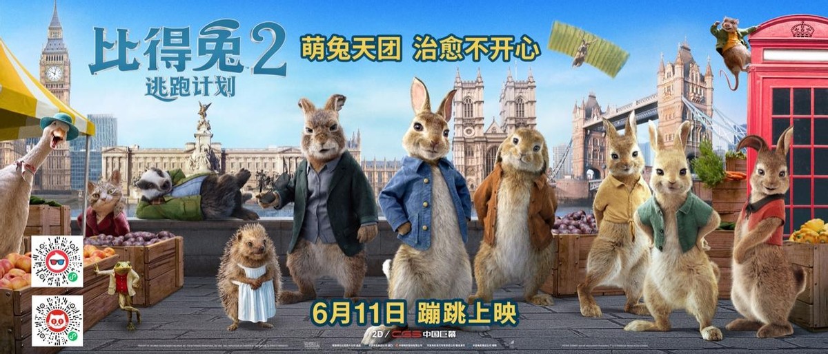百年来,尽管比得兔的形象已经深入人心,可是大家仅能通过绘本去认识它。首次将比得兔搬上银幕,还是2018年的事。事隔三年之后,比得兔又重新回归银幕,端午假期,《比得兔2:逃跑计划》全国欢乐热映中,萌兔解压治愈,专门拯救不开心。