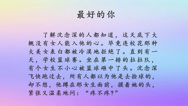 男主沈念深,电商界的传奇人物,女主孙恬恬,漫画家。