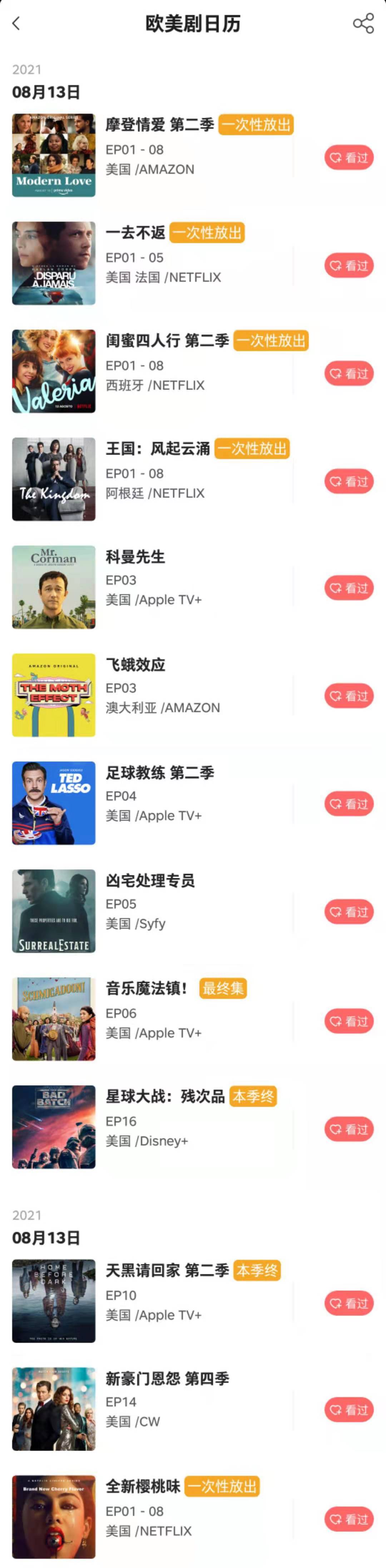 记艺app - 8月13日 欧美剧日历