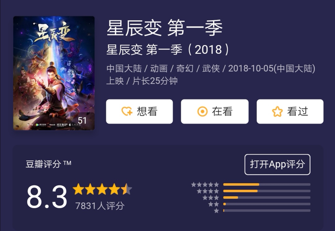 《星辰变》第一季也是在一片叫好声中完结,至少小编是这么觉得的!不然在豆瓣评分中,也不会斩获8.3分的成绩!