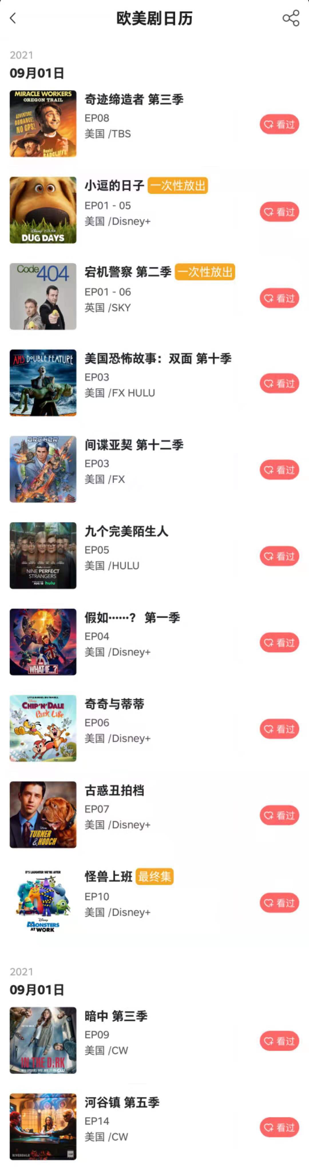 记艺app - 9月1日 欧美剧日历
