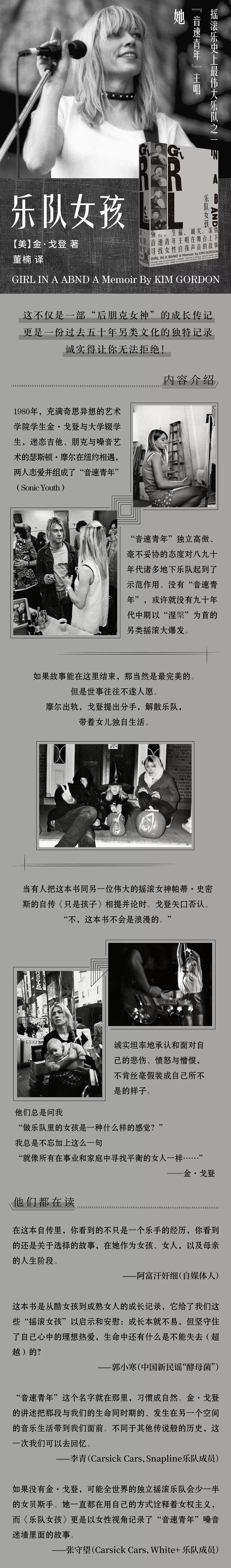 2011年11月,来到巴西圣保罗swu音乐节上的观众目睹了“音速青年”的最后一场演出。这本《乐队女孩》也是以对这场演出的描写作为开头,这当然是可以理解的—对于戈登来说,这是不折不扣的双重终结,70分钟的演出结束后,她的前半生最重要的两段关系—她的乐队与她的婚姻—都将走到尽头。