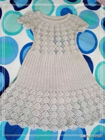 20、裙摆钩好后,挑钩衣领,衣领由1个外钩长针+一个直接钩的长针。