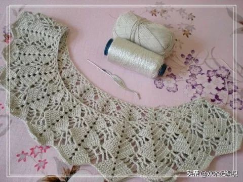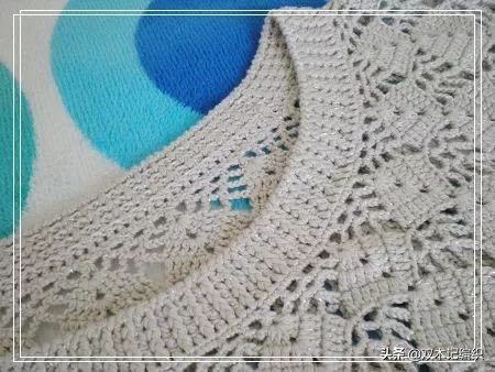 1、衣领花样钩到第三个时开始做前后差,后面六个花样多钩一个完整花形,这样就前面是三个花,后面是四个花合拢钩正身。