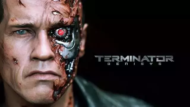 《终结者:创世纪》剧照,阿诺施瓦辛格饰演的具有仿生外表的机器人t-800