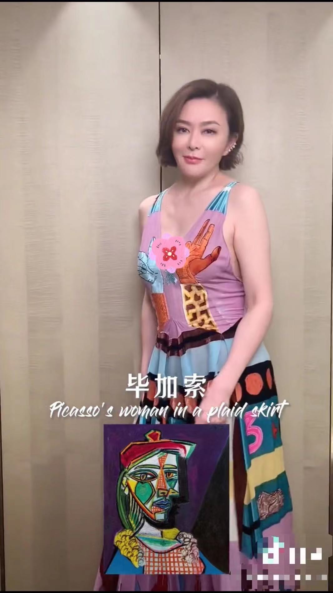 比较不一样的是,毕加索绘画风格的衣服是一件礼服长裙,修身的剪裁展现了关之琳纤细的好身材,相信她穿着这身出现在活动现场,一定会惊艳不少观众。