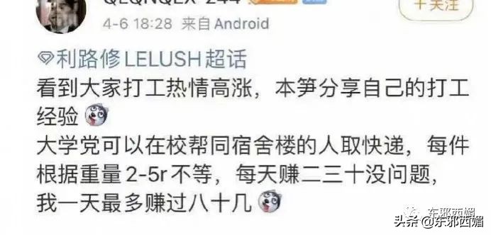 此外还有五花八门的挣钱路子,比如代人取快递;