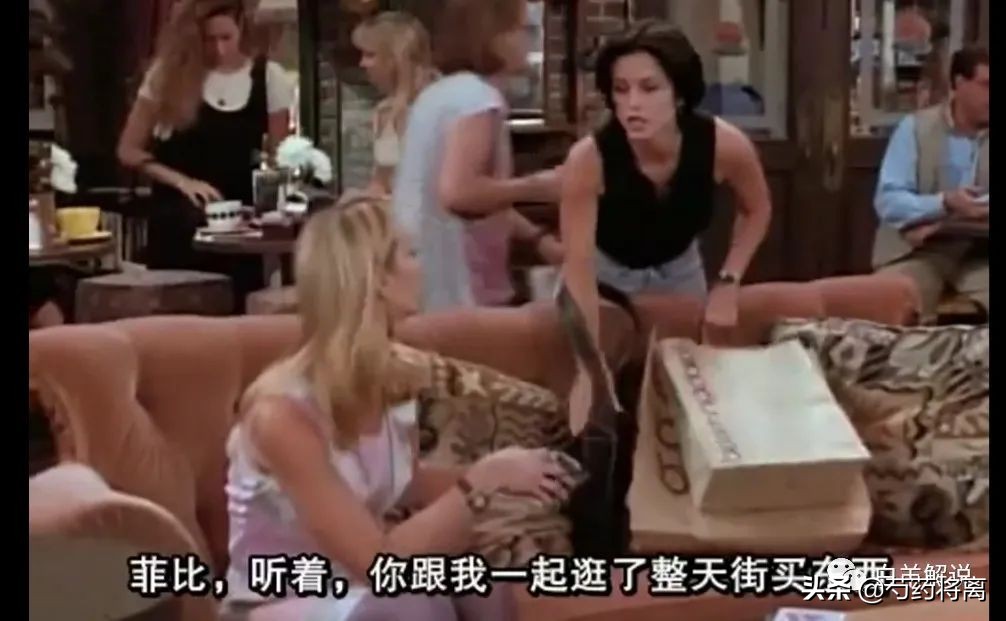 老友记第二季第二集中罗斯的新女友朱莉邀人购物,菲比怕得罪瑞秋,借故推脱,莫妮卡为表示友善答应同去;虽然偷偷摸摸,但却欲盖弥彰,瑞秋最终发现真相,感觉自己被背叛。两人的争吵听来仿佛莫妮卡有了“外遇”。