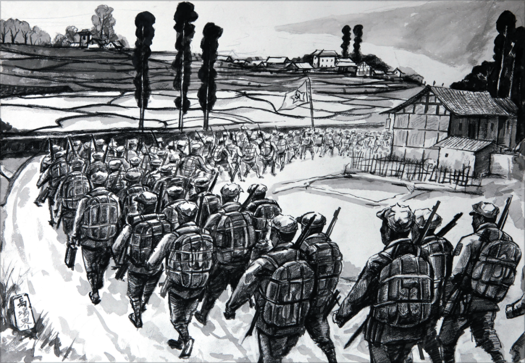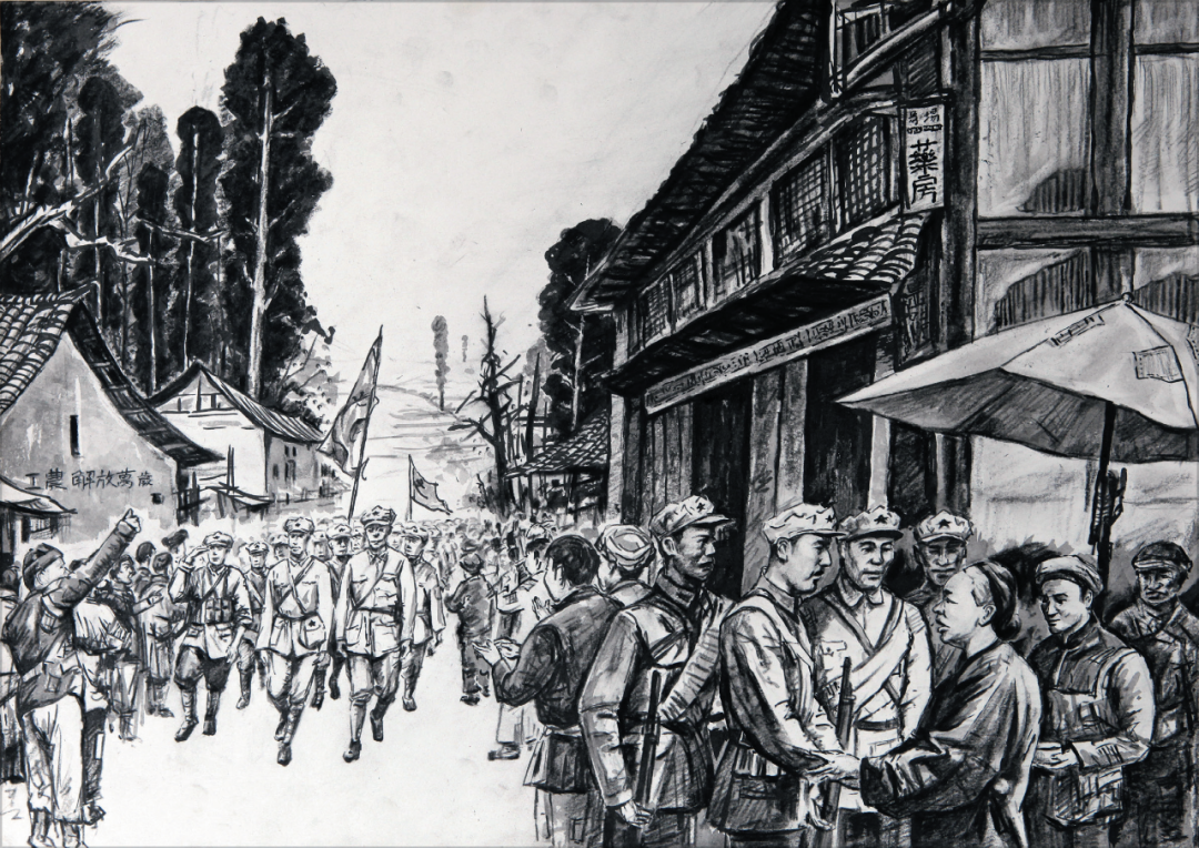 4、村民见红军战士很是劳乏,也猜想红军战士正在匆匆赶路,便极力谢绝。但红军战士坚持要帮忙。