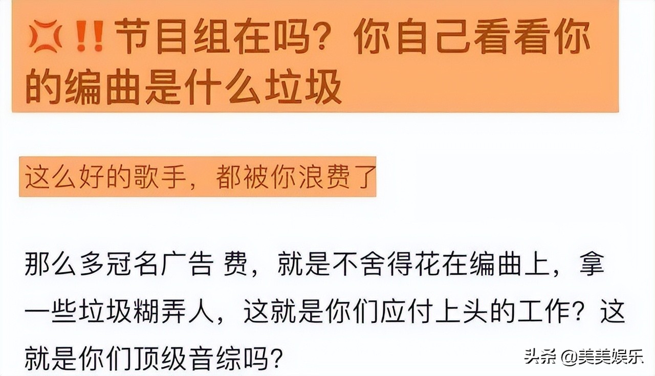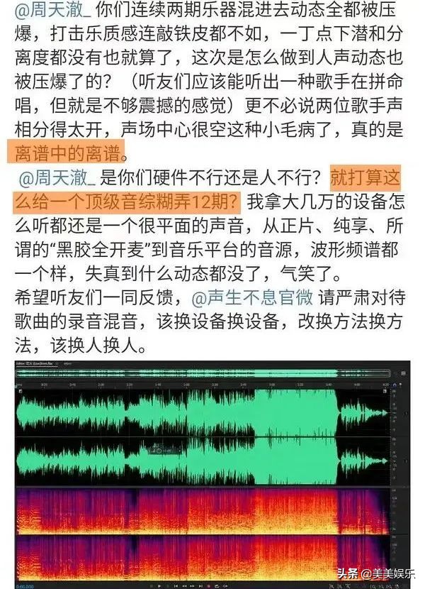 再比如,仅仅播出了两期,观众对于节目编曲和混音的不满已经达到了高潮。