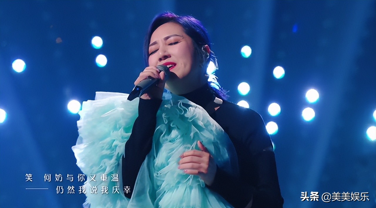 第一期不仅选了王菲的《执迷不悔》,就连妆容和长裙,都在致敬王菲,和她当年唱《容易受伤的女人》时一模一样。