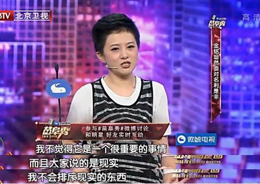 年少就在娱乐圈里浮沉过,又接受过高等教育的金铭也是脾气很好了,没有愤怒的反驳,上来就承认了自己现在确实不红,但是红不红对她来说并不是一件很重要的事情。
