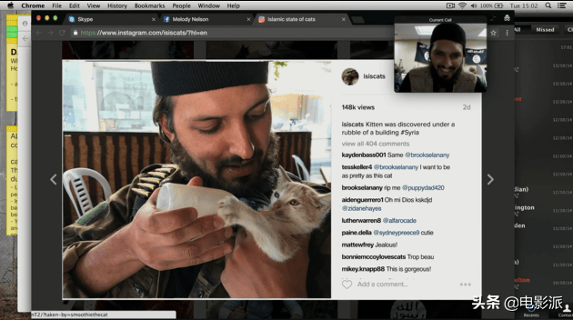 与比勒尔全程视频中艾米是戴着头巾,视频断掉或是挂掉,她就摘掉了头巾。