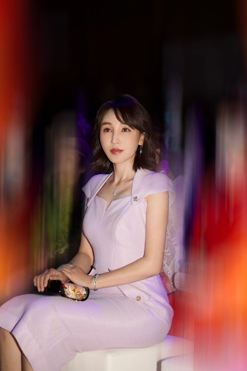 此次,在北京时装周grace chen2021早秋高定系列发布会上,岳丽娜身着grace chen丁香紫包身裙,气韵如兰、举止端庄,散发自信与成熟的魅力、展现出中国女性独有的风雅之姿。