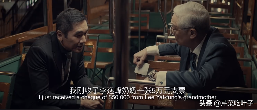 曾江有权有势,知道儿子杀了人,对方律师是方中信之后,就想用钱解决,两人在电车上相见。