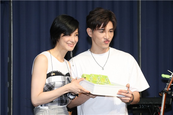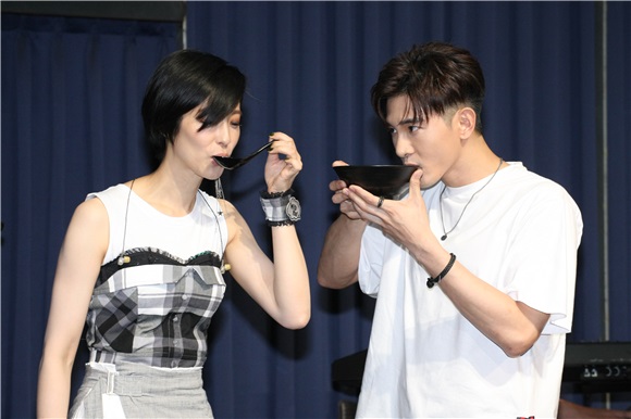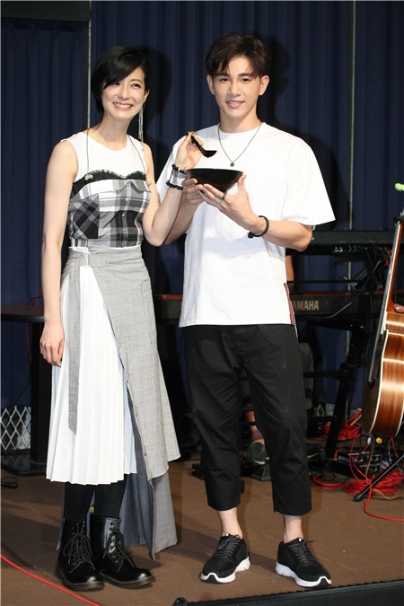 赖雅妍今天(9日)为公益而唱,张立昂在彩排时后特地送上鸡汤为她打气。
