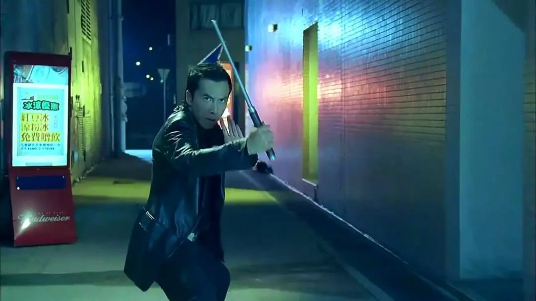 穿着皮衣,和吴京在街道玩刀战的《杀破狼》?