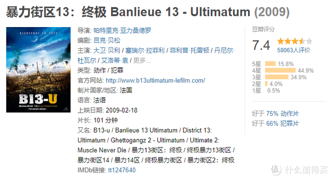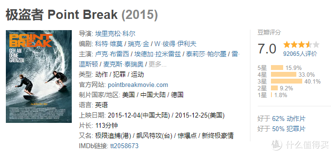 这一部则是保罗·沃克主演,探员保罗和跑酷爱好者 大卫两强联合,打击毒枭。这一部相比前作评分更低,只有7.0分。