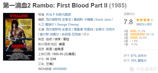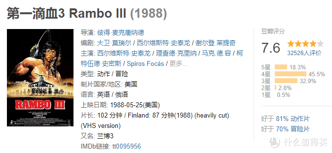 史泰龙的发家系列,枪林弹雨、血肉横飞,兰博的形象也因此深入人心。
