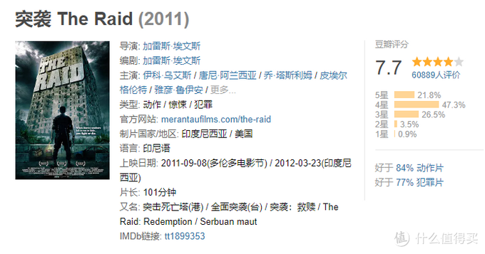 突袭系列是印尼的爽片,在罪恶之城中,一个个房间、一条条楼道的打斗、厮杀,拳拳到肉,节奏很快而且场面很刺激。