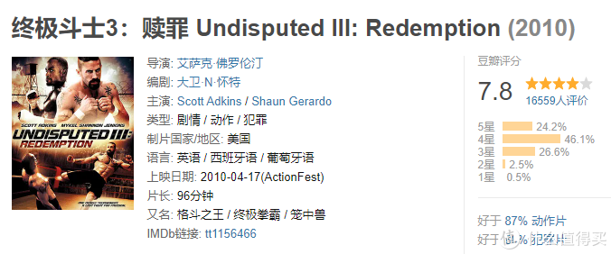 这一部里,博伊卡开始反思自己如此搏斗的意义,这次的战场不只是监狱的拳台了,事情更为复杂。这一部其实是很好的一部收尾片,但是豆瓣评分不高,私以为是被低估了。