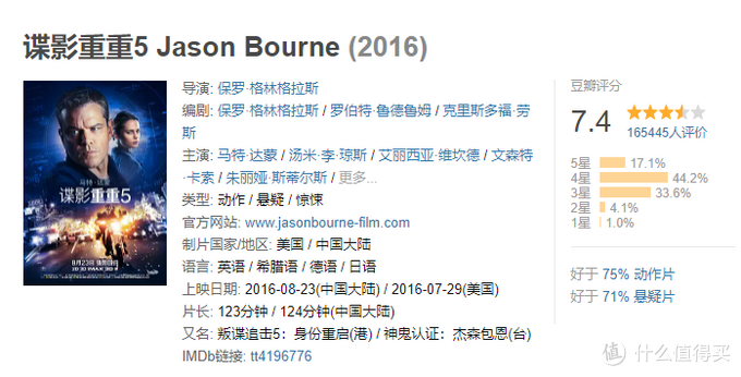 2016年上映的谍影重重5的剧情稍微更迷惑一些,反映在豆瓣评分上就是波恩(马特?戴蒙 饰)掉下了8分,只有7.4分。谍影重重这个系列可以说是把清除特工——>特工反击拍的彻彻底底。