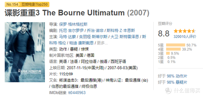 第四部的主角则并非波恩(马特?戴蒙 饰),但还是同一条故事主线,牵扯出一个更大的迷局。这一部的豆瓣评分并不高,值友6.8。