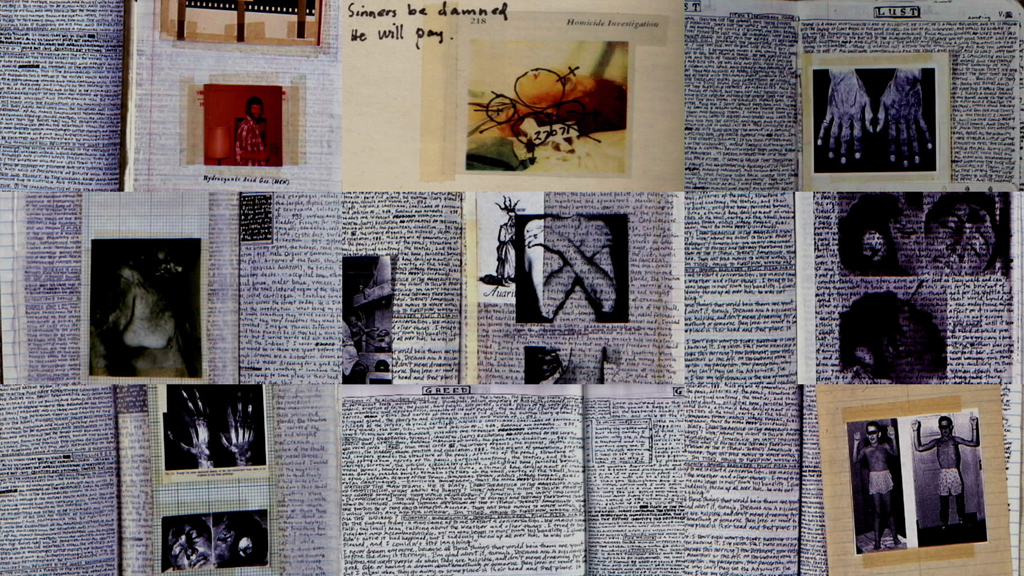 这些笔记全部都是真实的片中连续杀人犯约翰·杜(john doe)家里大量纪录他随笔日记的笔记本全部都是真的,剧组总共花了2个月完成,总花费高达15,000美金。片中沙摩塞(摩根·弗里曼饰演的警探)曾说,要花2个月的时间才能把这些笔记本看完。