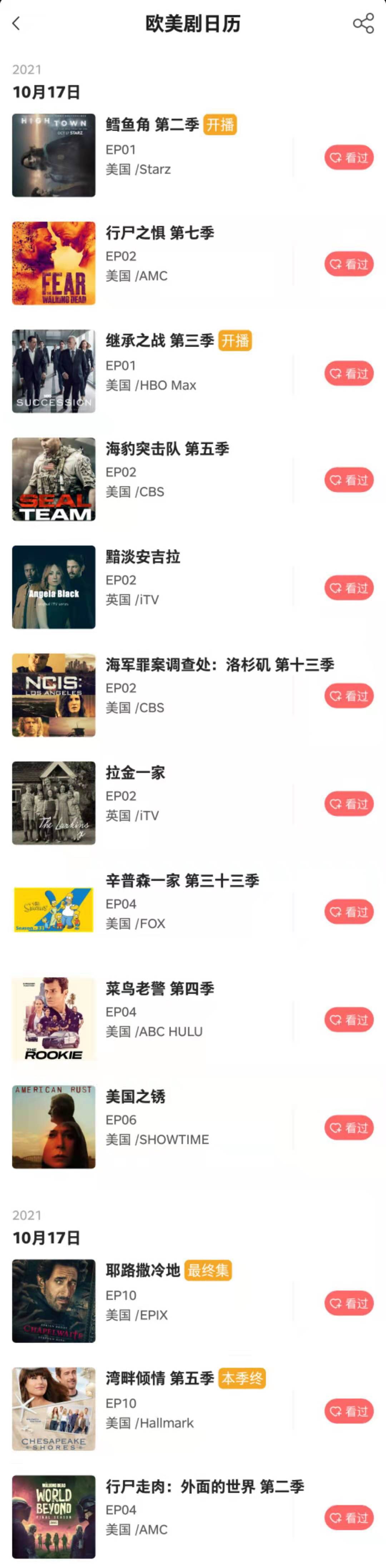 记艺app - 10月17日 欧美剧日历